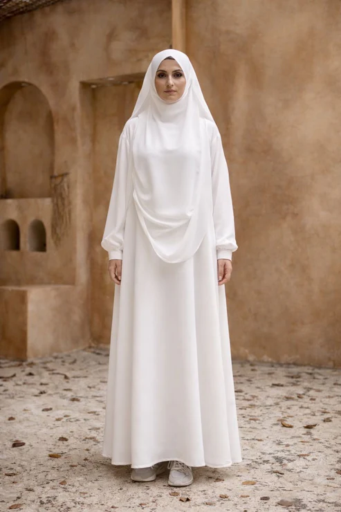 ✨ Presenting: Burkhawala Premium White Abaya with Attached Khimar & Nose Piece ✨