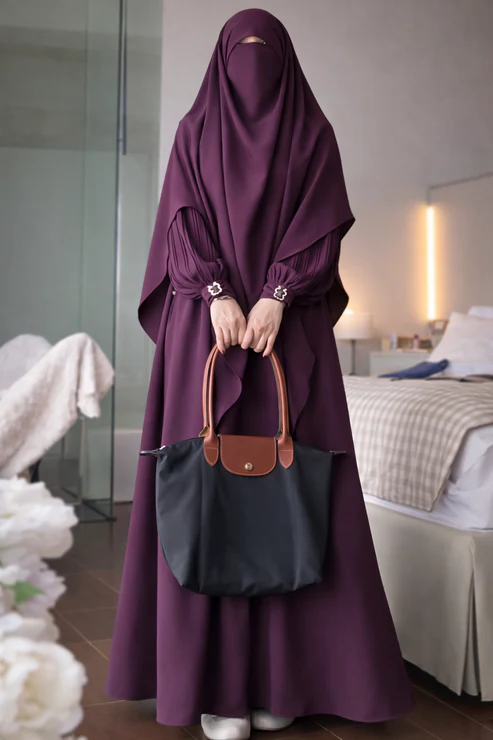 🔹 Khimar: Attached khimar with a graceful drape for a sophisticated look